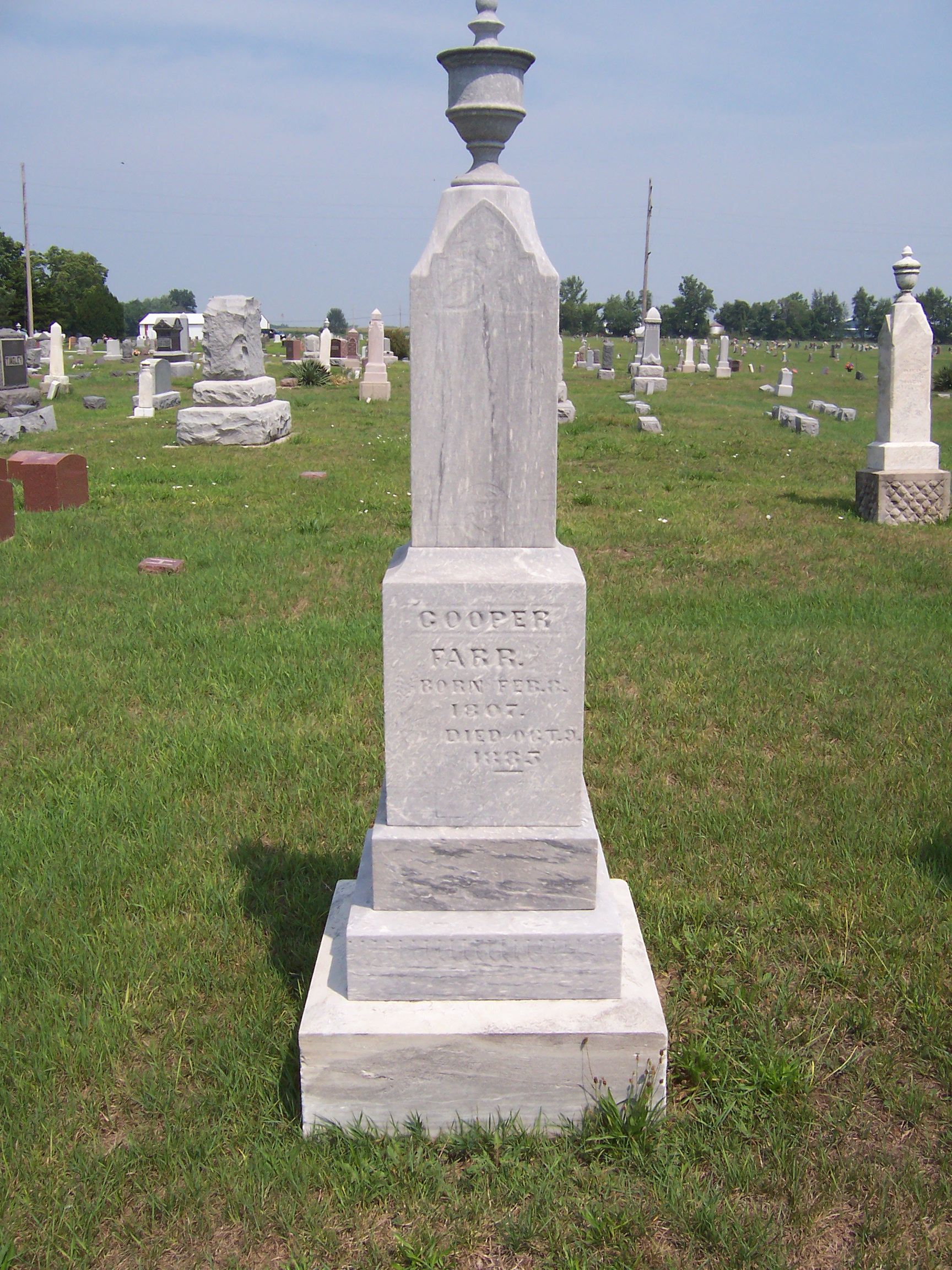 Cooper Farr was born in Pennsylvania on February 8, 1807 the second child of Nathan and Susan Farr. When he was about seven years old, the family moved to Hamilton County, Ohio. There he grew to adulthood. It seems that his father Nathan died when the children were young.