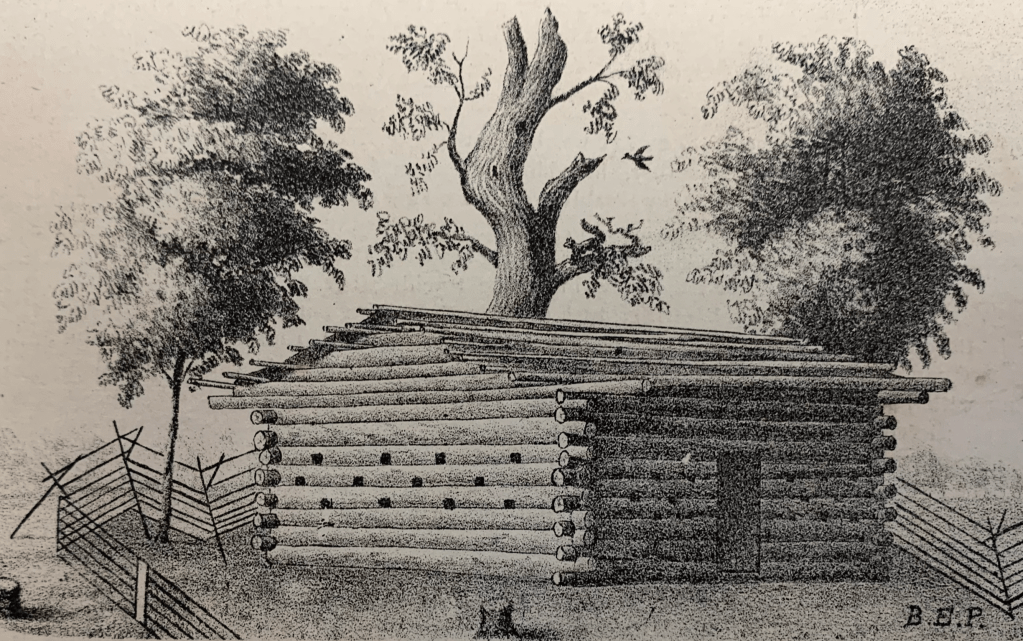 Burris E. Pittman drew this picture of the 1822 fort that was built in Industry, Illinois. The fort was used as protection against Indian attacks. Pittman drew the picture in 1879 for a book about history of McDonough County, Illinois.