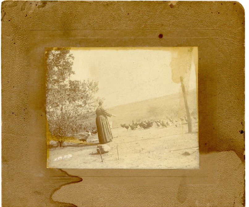 Vermont Township, Illinois – Pioneer woman feeding chickens